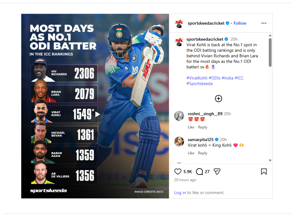 However, cricket analysts and fans quickly noted discrepancies when comparing Kohli’s ranking history with past ICC data. The figure did not accurately reflect his multiple stints at the top over more than a decade.