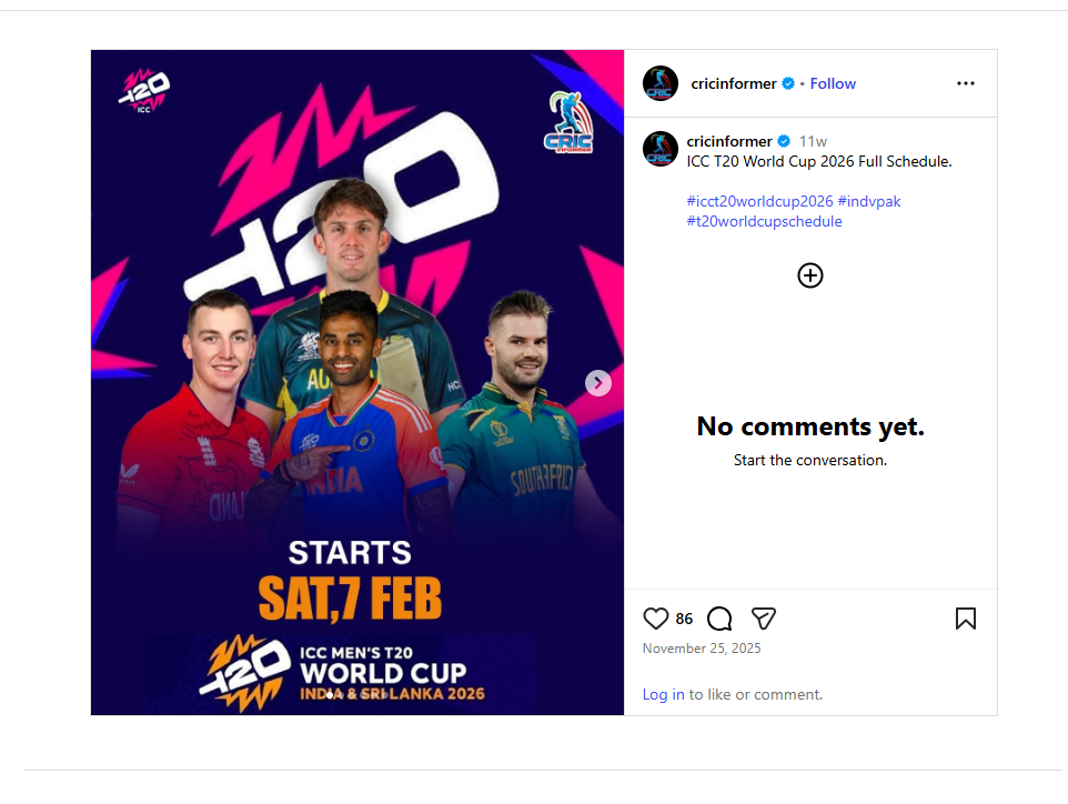 ICC T20 World Cup 2026: Full Match Schedule for February 12