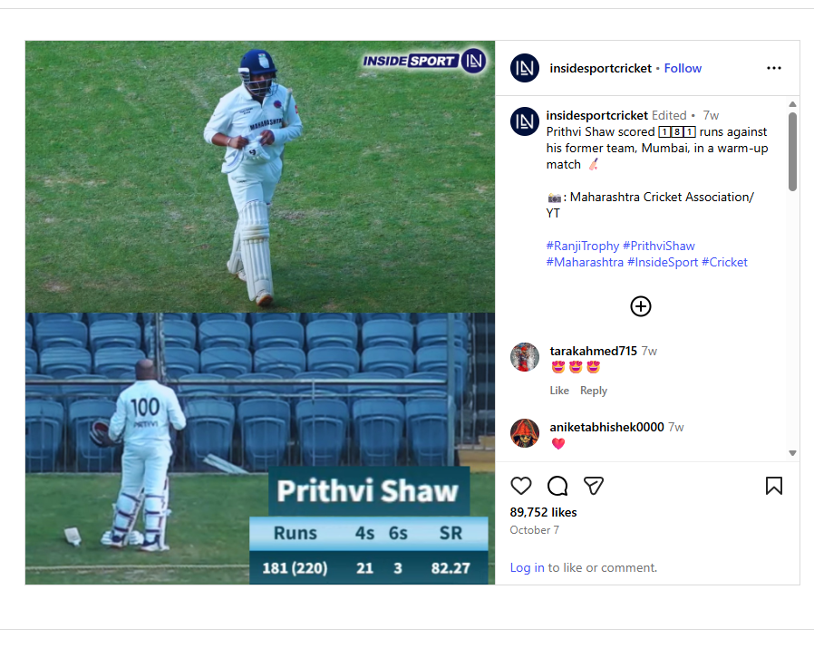 Prithvi Shaw’s 23-ball fifty is more than just a quick score — it is a statement. A bold message to selectors, critics, fans, and IPL franchises that he still has the firepower to dominate T20 cricket.