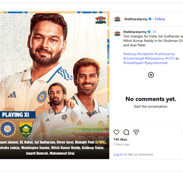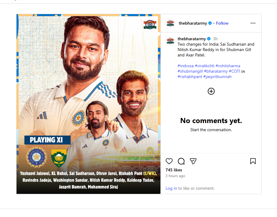 Adding to the excitement, Rishabh Pant officially stepped in as India’s 38th Test captain, marking a major milestone in his cricketing journey. India also introduced two fresh faces—B Sai Sudharsan and Nitish Kumar Reddy—bringing new energy and balance to the side.