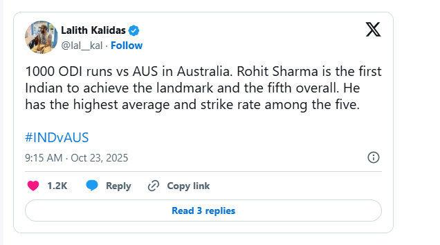 When Rohit Sharma hit his first boundary of the series, he reached another rare milestone — becoming the first Indian batter ever to score 1000 ODI runs against Australia in Australia.