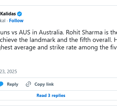 During one particular over from Australia’s Mitchell Owen, Rohit hammered two trademark pull-shot sixes, taking his tally of ODI sixes in SENA nations (South Africa, England, New Zealand, and Australia) to 150 — a record no Asian player had achieved before.
